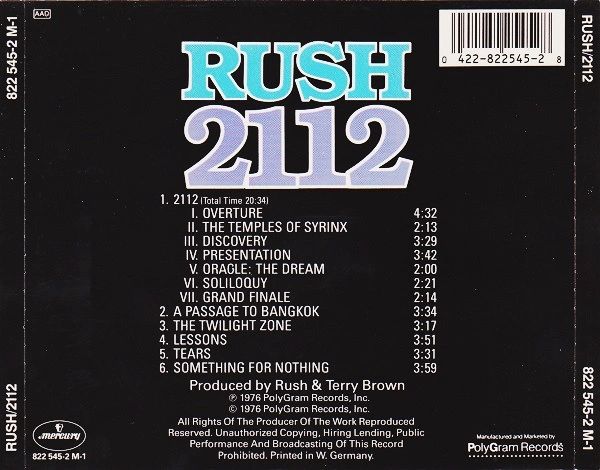 In a weird kinda way, you see "2112" with the >7< parts. What is weird is that the 7 parts as right at the start of the album (and i think the bible says something about having LESS time in the passed, and way more TIME in the future). That would be exactly right with the album. The >Start< is where we see this happening (>7< in the BEGINNING).