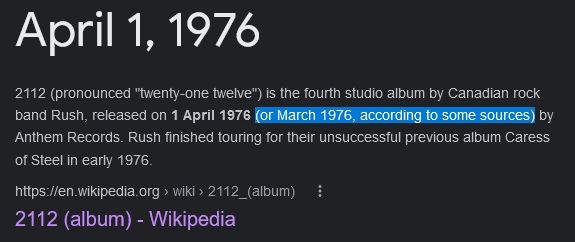Now did you know, the "2112" album was released on April 1st 1976. >4<, like the >4< holes in the pic? All moving 1 step ahead of the >3< number.